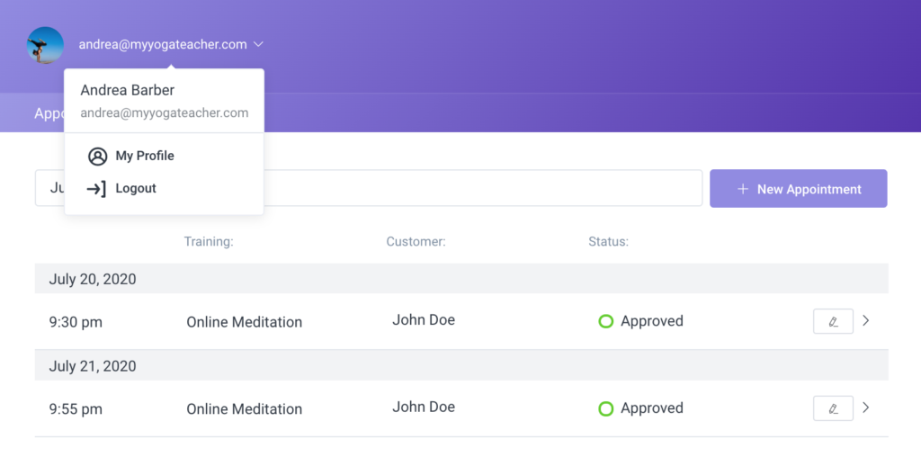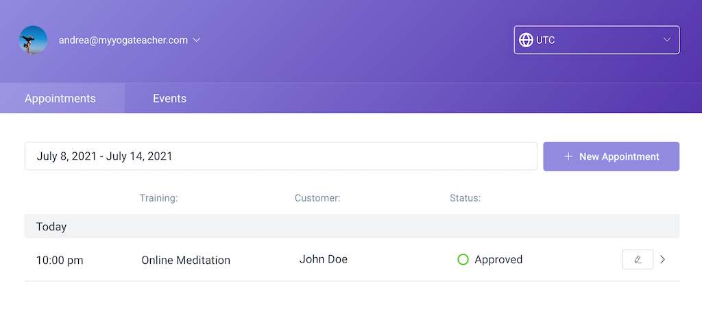 تظهر لوحة التحكم بها جميع المواعيد المحجوزة